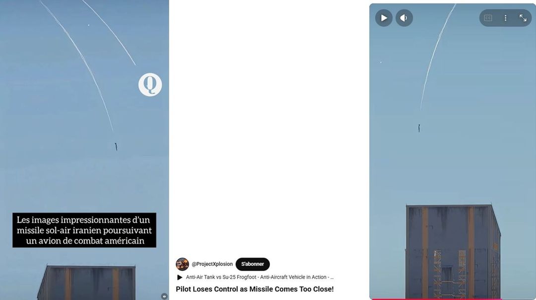 La légende de la publication, également intégrée dans la vidéo, indique : « Les images impressionnantes d’un missile sol-air iranien poursuivant un avion de combat américain ». Le logo du compte « lequoti » est également présent dans ces images. Cette même vidéo a par ailleurs également été publiée sur Facebook le même jour, par le même compte. Elle y a recueilli plus de 273 mille vues.