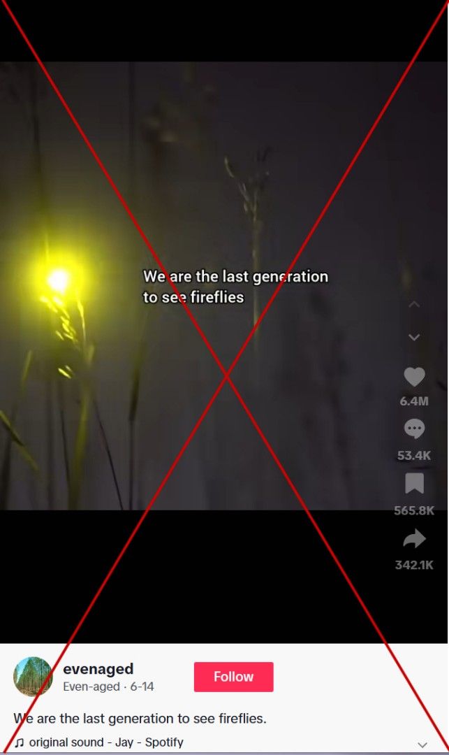 Des publications similaires exprimant des inquiétudes sur l’extinction des lucioles d’ici la prochaine génération ont été partagées sur les réseaux sociaux dont TikTok ou Facebook ces dernières semaines, alors que l’été constitue la période pendant laquelle ces insectes sont principalement observés.