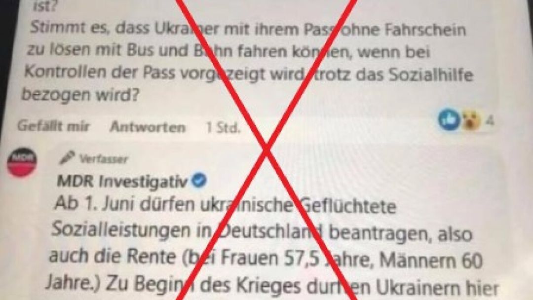Als Beleeg dofir haten d’User e Facebook-Kommentar vun der Emissioun “MDR Investigativ” erugezunn. Den MDR hat säi Kommentar allerdéngs scho korrigéiert. Ukrainesch Flüchtlinge gi bei Pensiounen an Däitschland net anescht behandelt.